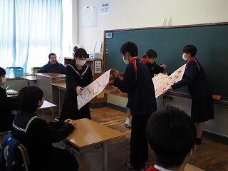 全校学習文化委員会の取り組みの一つで、1,2年生が3年生へ応援メッセージを書いて贈りました。