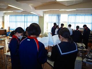卒業式の歌の練習が始まっています。パート別に練習をしていました。