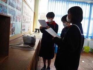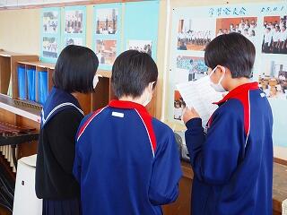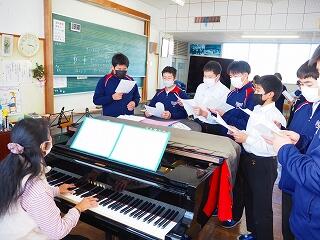 「この歌は今日から練習が始まりました。3年生を送り出す卒業式に向けて、感謝の気持ちを込めて歌えるように一生懸命練習に励んでいます!」