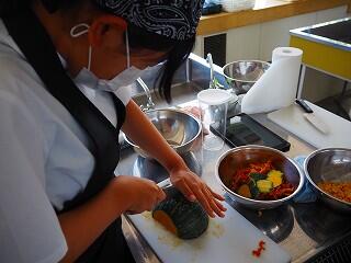 各所にアンケートを取り、検討し活動計画を立てたそうです。「出荷されない農作物を利用してスウィーツを作ってみる」(実際には、農業をされている保護者の方が子どもたちの発想と取り組みに賛同され、とても立派な農作物を提供してくださいました。本当にありがとうございます。)