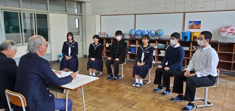 今日の面接の練習には、学校運営協議会委員の6名の皆様が面接官として来てくださいました。
