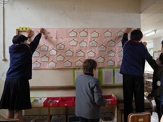 全校学習文化委員会の取り組みの一つで、1,2年生が3年生へ応援メッセージを書いて贈りました。
