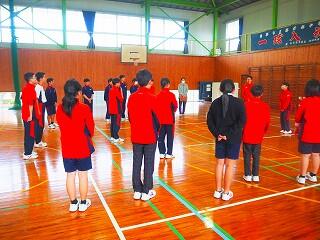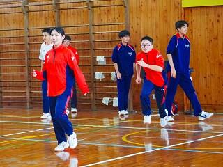 体がほぐれたところで、班に分かれてダンスを確認、練習を繰り返します。