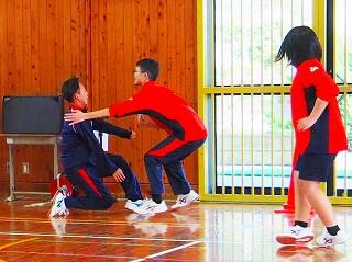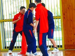 今日の企画は体育館で『陣取り』、参加者集合!! ルールの説明の後、チームに分かれます。