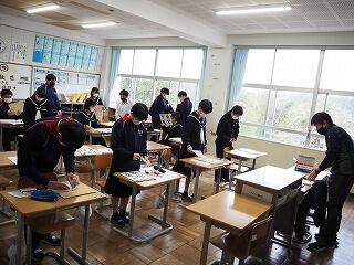 3年生は、今日、それぞれの希望する県立高校の推薦入試に臨んでいます。私立専願で決まった人たちは今日の午前中は学習です。頑張っている仲間に「頑張れ!3年生のみんな!」と、『念』じました