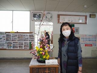 毎月、学校の玄関に彩を添えてくださっているのは、地域の華道教室の先生です。