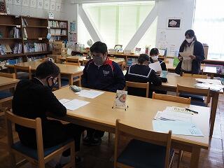 今朝、雨が降っていたので運動場では遊べず。図書室で静かに過ごしていた人たち。