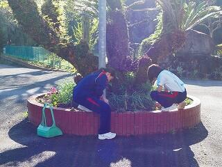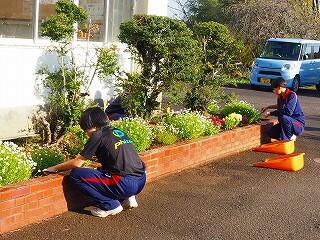 部活動前のボランティア活動で作業をしていました。