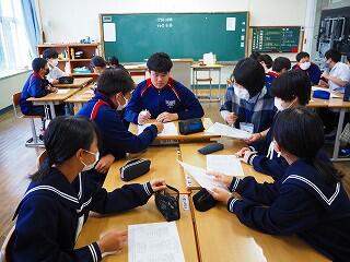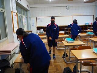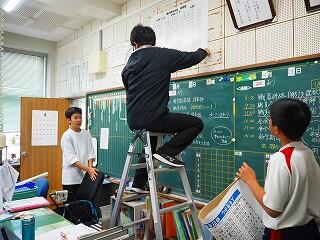 すぐにテキパキ作業開始。気持ちよく協力し合える姿は、都於郡中の素晴らしいところの一つです