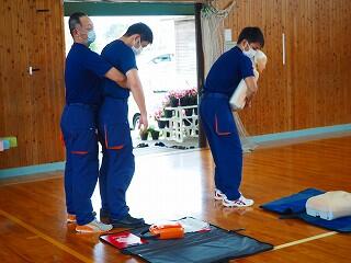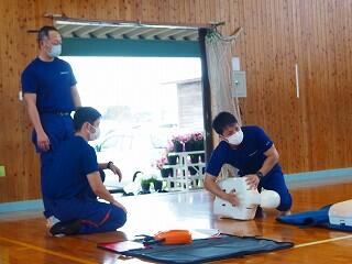 西都市消防本部の方のご指導のもと、全職員演習を行い、確認をしました。