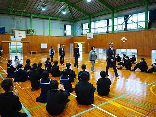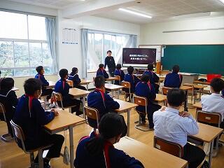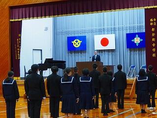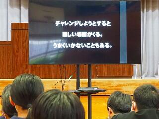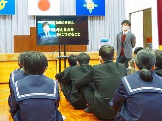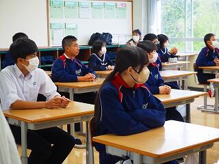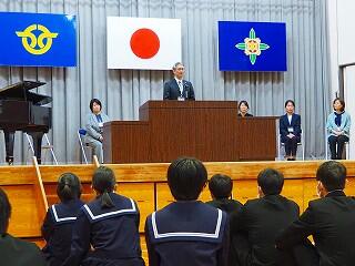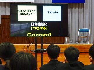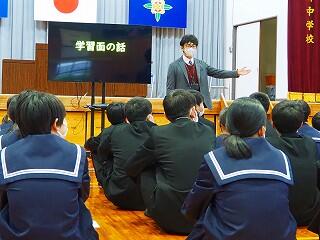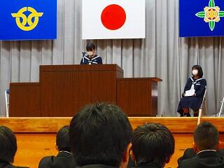 基本、学校は楽しい所。みんなで学校を作っていく意識を持ってほしいと思います。そのための【願い】として、あと2年で『西都中』になります。未来につながる再編です。まだ2年ある。ポジティブに考えてほしい。自分が都於郡中を去る時、『この学校で良かった!』と思える学校、それを作っていく1人となってほしい。
