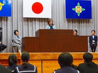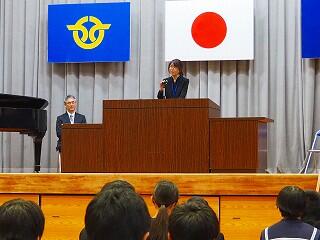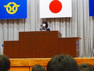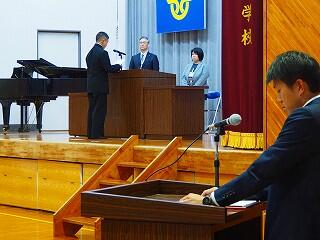生徒会の代表者が、歓迎のことばをていねいに述べました。とても気持ちが伝わってきました。