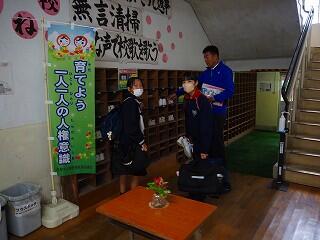 朝から気持ちの良いあいさつと笑顔で、朝のボランティア活動をしていたのはバレー部のみなさん。