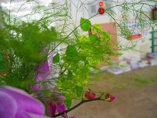 このほわほわした細い枝が「アスパラ」だそうで、なんとあの「アスパラガス」がそのまま大きくなると葉が開いて、このほわほわした枝が出てくるのだそうです。