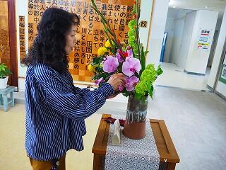 毎月、玄関に生け花を飾ってくださるのは、地域の華道教室の先生です。
