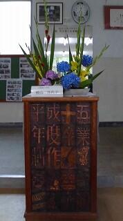 毎月、地域の華道教室の先生が、その時期や季節のイメージで生け花の作品を飾ってくださっています。