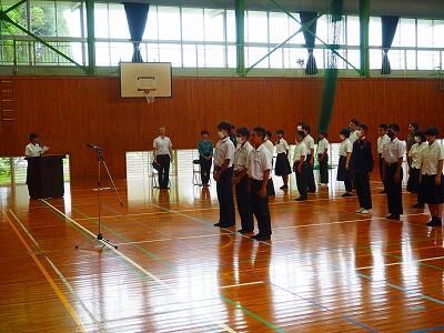 14日(金)に行われる中体連【陸上競技】に出場する皆さんの激励式が行われました。