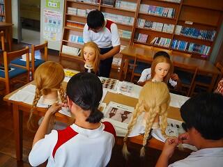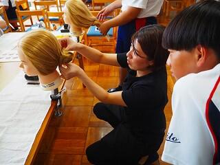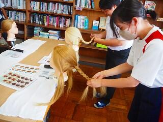 まずは、髪の毛がからまないように丁寧なブラッシングの基本、三つ編みの基本を教えてもらって、アレンジスタイルにチャレンジ!