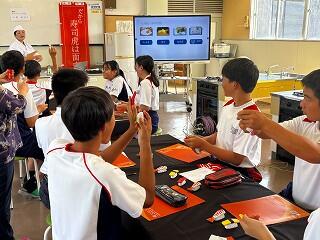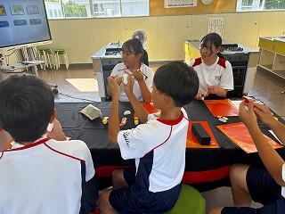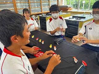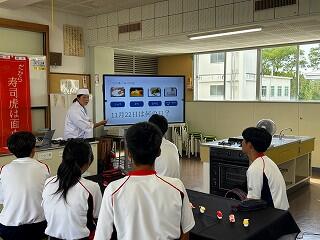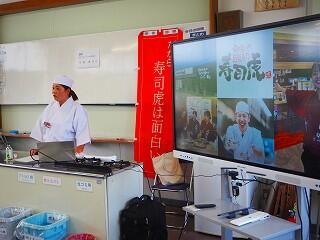 『すし』についてクイズ形式で楽しく正しい知識を学習したり、握り方の学習グッズで『すしの握り方』を教えていただいたりしました。