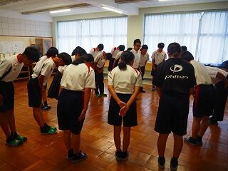 一人ひとりの姿勢に、都於郡中を大事に思う気持ちや、1日の始まりの礼節など、それぞれに現れていました。