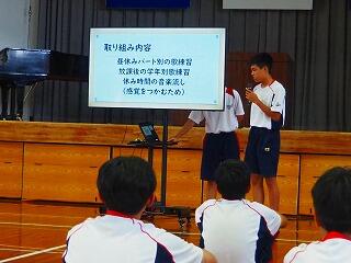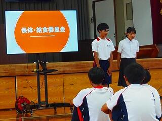 3つの委員会とも、前期最後の生徒集会をとても誠実に、ていねいに、そしてしっかりと伝えていました。