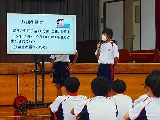 3年生がどんな曲を選んで、どんな振り付けを考えてくれたのか、1,2年生は待ちに待った初日です!まずは、曲を聴いてイメージをつかんでもらったり、細かく区切って振り付けをゆっくり教えたりなど、3年生は伝え方、教え方も工夫していました。
