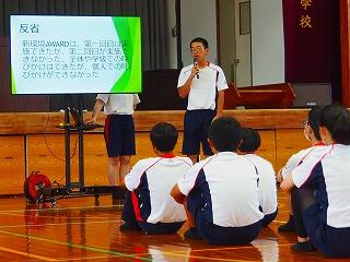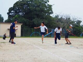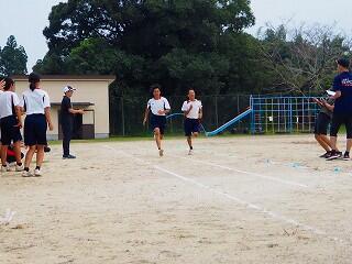 走り終わった後、「お疲れ!」と声を掛け合ったり、手を挙げてタッチして迎えたりなど、互いをたたえあう姿が見られました。運動の場面では、タイムを計ったり、勝敗がついたりする場面も多いのですが、一生懸命最後まで頑張り抜くお互いを、たたえあえる雰囲気がとてもさわやかでした。