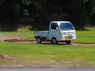 毎年、年度初めの時期、運動会練習時期等に、軽トラックで運動場を整備してくださいます。今回も、9月8日(月)に整備作業をされていて、今日はその続きをしてくださっていました。