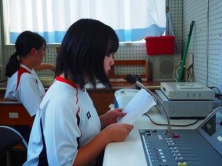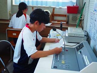 給食時間の放送で、生徒会役員選挙の立候補者のそれぞれの応援者の演説を行っています。