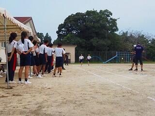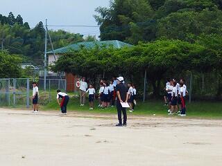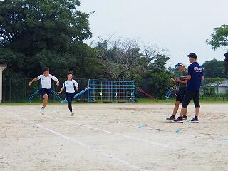 そしてその後には、中学生の練習時間です。小学校のグラウンドをお借りして、100M走の練習です。