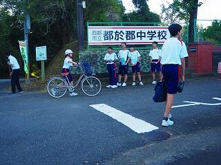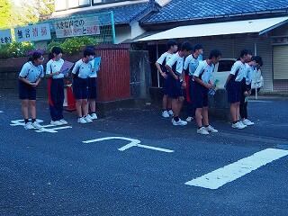 一人一人の「礼」の丁寧さ。それに返される先生方も同じように丁寧な礼です。大事なことを、みんなで継続している都於郡中です。