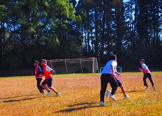 1回目は8分の設定で「おに」1人からのスタート。タッチされたらビブスを脱いで「おに」がどんどん増えていきます。