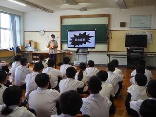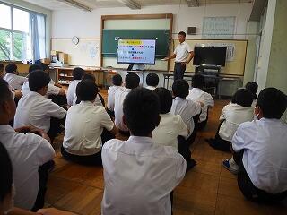 「2学期はたくさんの行事があります。中でも、小中合同での運動会は中学生が積極的に引っ張っていく立場です。自分自身に自信がないからといっても、小学生からは頼られる存在です。僕も以前は、「責任」ということに対して消極的だったけど、やらずに後悔するよりかは、やって後悔した方が自分のためになると思います。失敗を恐れずチャレンジしていきましょう。