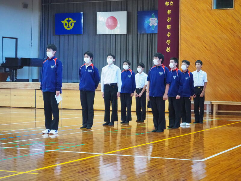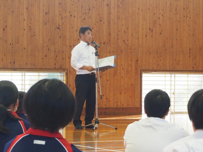 「県大会に出場できるのも、駅伝大会に出場できるのも、全員ではありません。少しの、一握りの人にだけのものです。全力で出し切って、良い結果を残してきてください。都於郡中みんなが応援しています。」