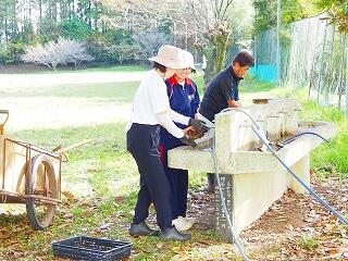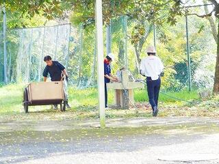 その他にも、体育館前では教頭先生が作業中・・・ありがとうございます。