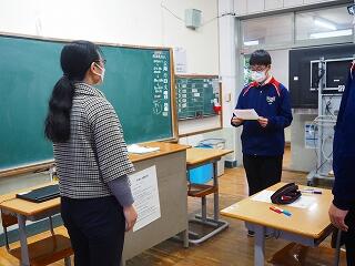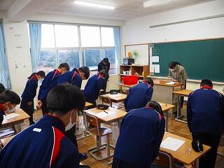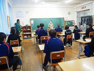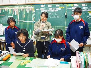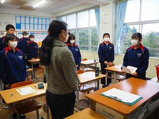 【後半】栄養教諭の宮原先生が各学級を回り、直接お話をされ、学年代表生徒がお礼の言葉を伝えました。