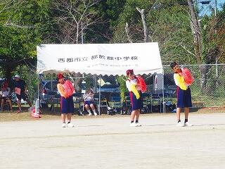 「練習や準備の時も、みんなが私の運動会の目標である『全力で元気に』を心がけてくれていたので、とてもやりやすかったです。私自身も運動会が成功するためにどんなことをすればよいのか、たくさん考えました。運動会は両団一人一人が競技、応援、自分の仕事に取り組んでいて、とても盛り上がっていました。中学校最後の運動会、とても楽しかったです。」