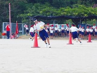 「僕はリーダーをやって、しっかり1,2年生や小学生をまとめることができるか最初は不安でしたが、段々練習をしていく中で、声も大きくなってまとめることができたと思います。徒走、団技、全員リレーでは一生懸命し、ダンスでは振り付けを大きくして踊ることができ、応援では大きな声で応援することができました。応援の部で優勝することができたのでうれしかったです。中学校最後の運動会で良い思い出ができました。」