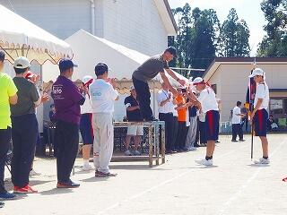 「素晴らしい運動会でした。誰一人として手を抜くことなく、最後まで一生懸命に頑張る姿、互いに称賛し合う姿、小学生の手本となる立派な行動でした。また、いろいろな所で、それぞれの係の人たちが声かけ合いながら協力し合う姿がありました。都於郡中の誇りです。この熱い思いを、次につなげていってください。