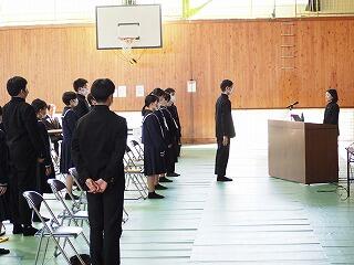 「立派な立志式でした。創作四字熟語は、それぞれに思いの込められたものなので、それに向かって頑張っていってほしいと思います。2年生の発表態度も、全校生徒の聴く態度も、とてもよかったです。都於郡中の良さが輝いていた式でした。」