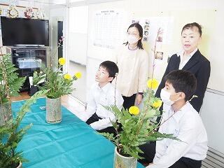 「生け花は初めての体験でした。どんな風に出来上がるのか、想像が膨らんでいました。体験して、生け花の面白さが少しわかったような気がしました。最初はあまり興味はなかったけど、今日の体験学習を通して、花のことをもっと詳しく調べてみたいと思いました。とても素晴らしい体験学習だったので、ぜひ次の後輩の人たちにも体験してほしいと思いました。」