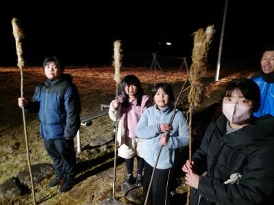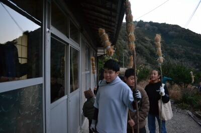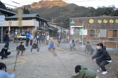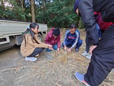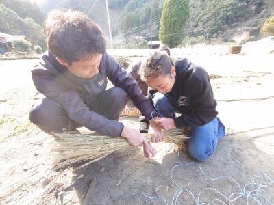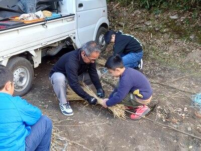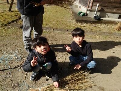 この日は「もぐらうち」で使う棒も作りました。藁を縛るのに工夫がいるようです。
