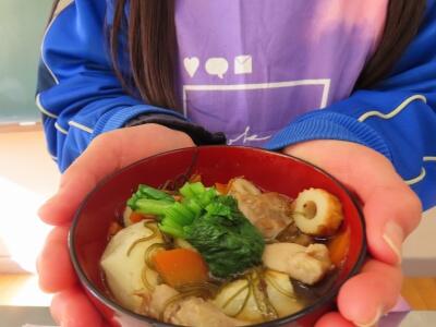 中学1年生は、調理実習でお雑煮を作りました。