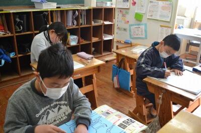 登校した児童生徒は今日も元気に学習に励んでいました。少人数のため一人休んだだけでもかなり寂しく感じますね。