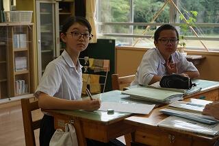 中学校3年生は理科で力学について学んでいました。2年生は担任の先生の数学で、二次関数の学習をしていました。1年生も担任の先生の英語を一生懸命学び取っていました。