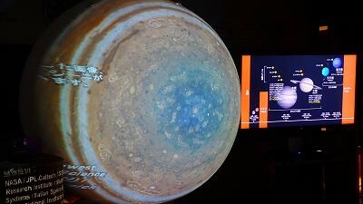 さて、今日の西都銀上学園では、星座や惑星に詳しい専門家の方々をお招きして4時間目に中学生、5時間目に小学生が星についての学習を行いました。大きな球に太陽系の惑星を映し出して観察をしたり、星に見立てた模型を角度や距離を測りながらならべたりする活動をしました。