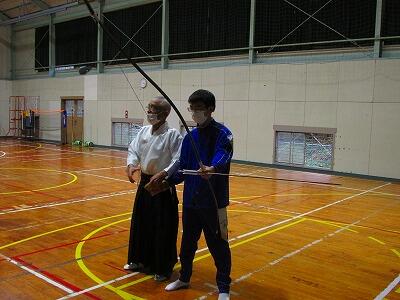 慣れない作法に苦戦しながらも、弓の打ち方の学習に真剣に取り組む姿が見られました。