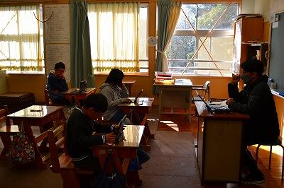 学校に残る中学生も一生懸命学習に取り組んでいました。