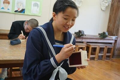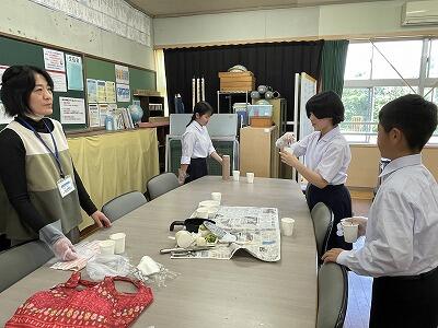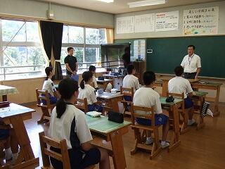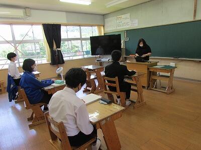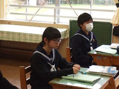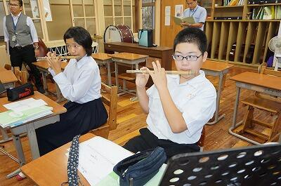 中学校1年生は英語「リサイクル活動」音楽「日本の楽器の響き」の学習をみていただきました。篠笛のさし指などの奏法を考えながら見つ出しうれしそうでした。