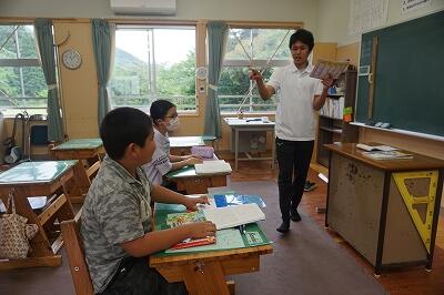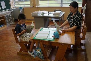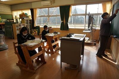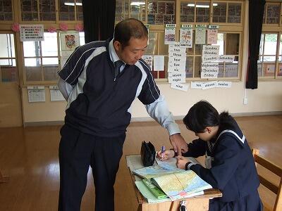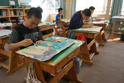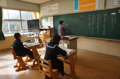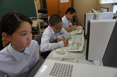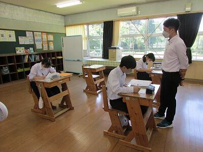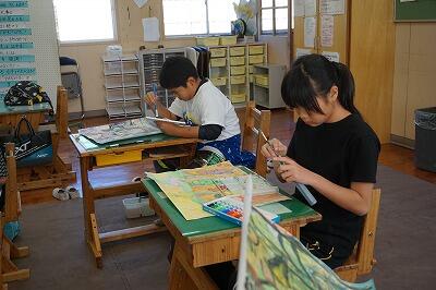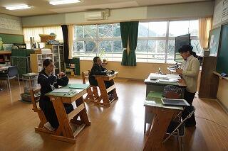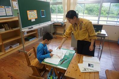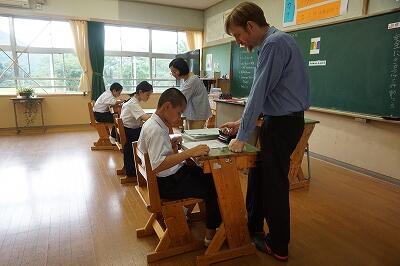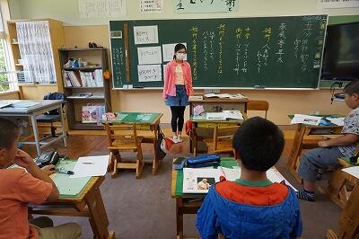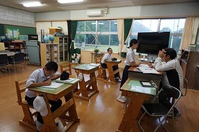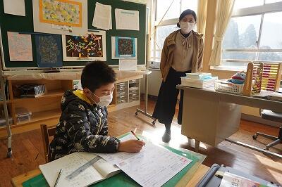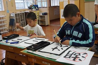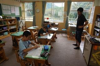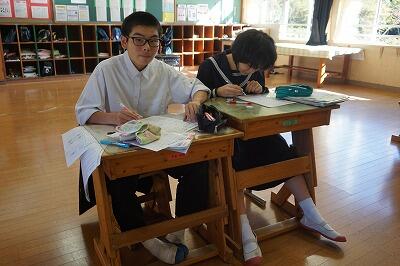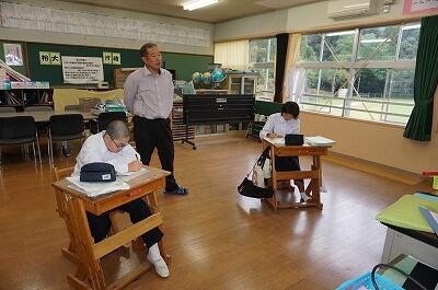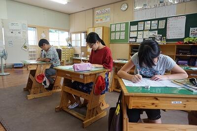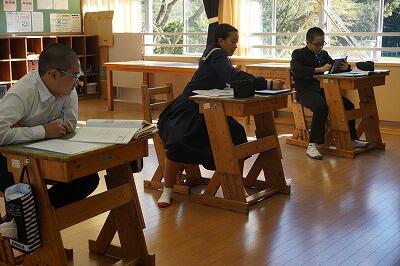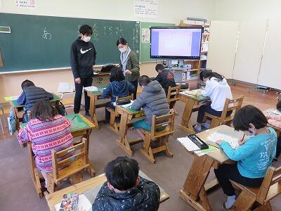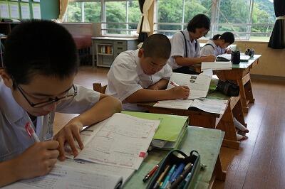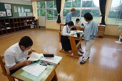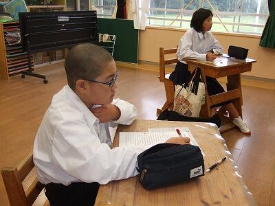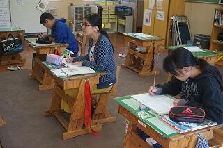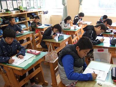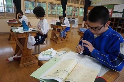 5・6年生は古文を暗唱したり試写したりと国語の学習に励んでいました。6年生は担任の先生に、5年生は中学校の国語の先生に教えていただいています。